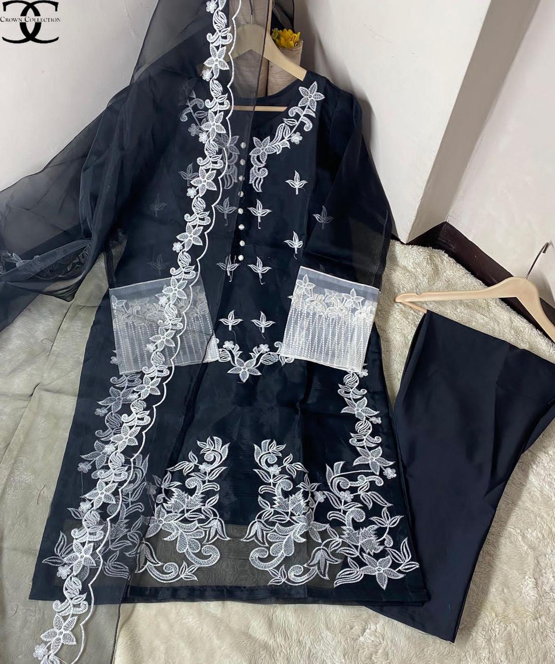 ✨ Product Highlights: Shirt Fabric: Organza Shirt Design: Fully embroidered for a luxe, festive look Trouser Fabric: Malai (plain for a sleek, balanced finish) Dupatta Fabric: Organza with elegant embroidery 📐 Standard Size Measurements:...