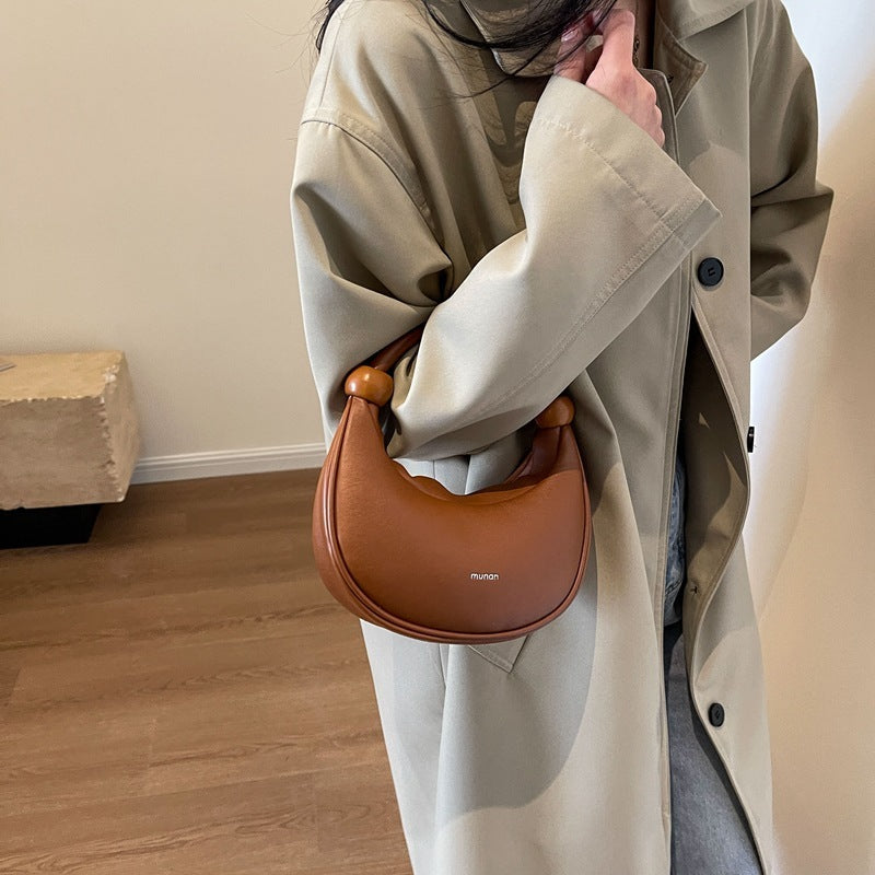 Women's Shoulder Messenger Soft Leather Portable Moon Bag